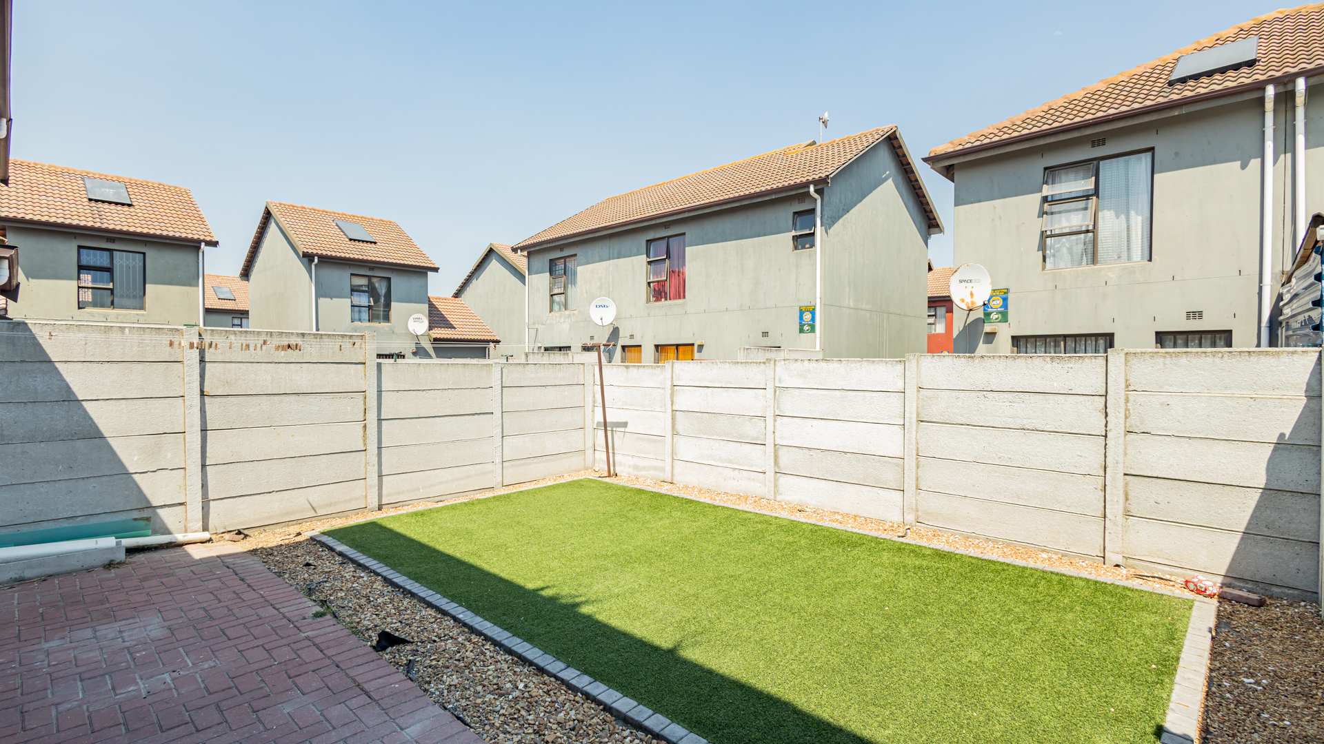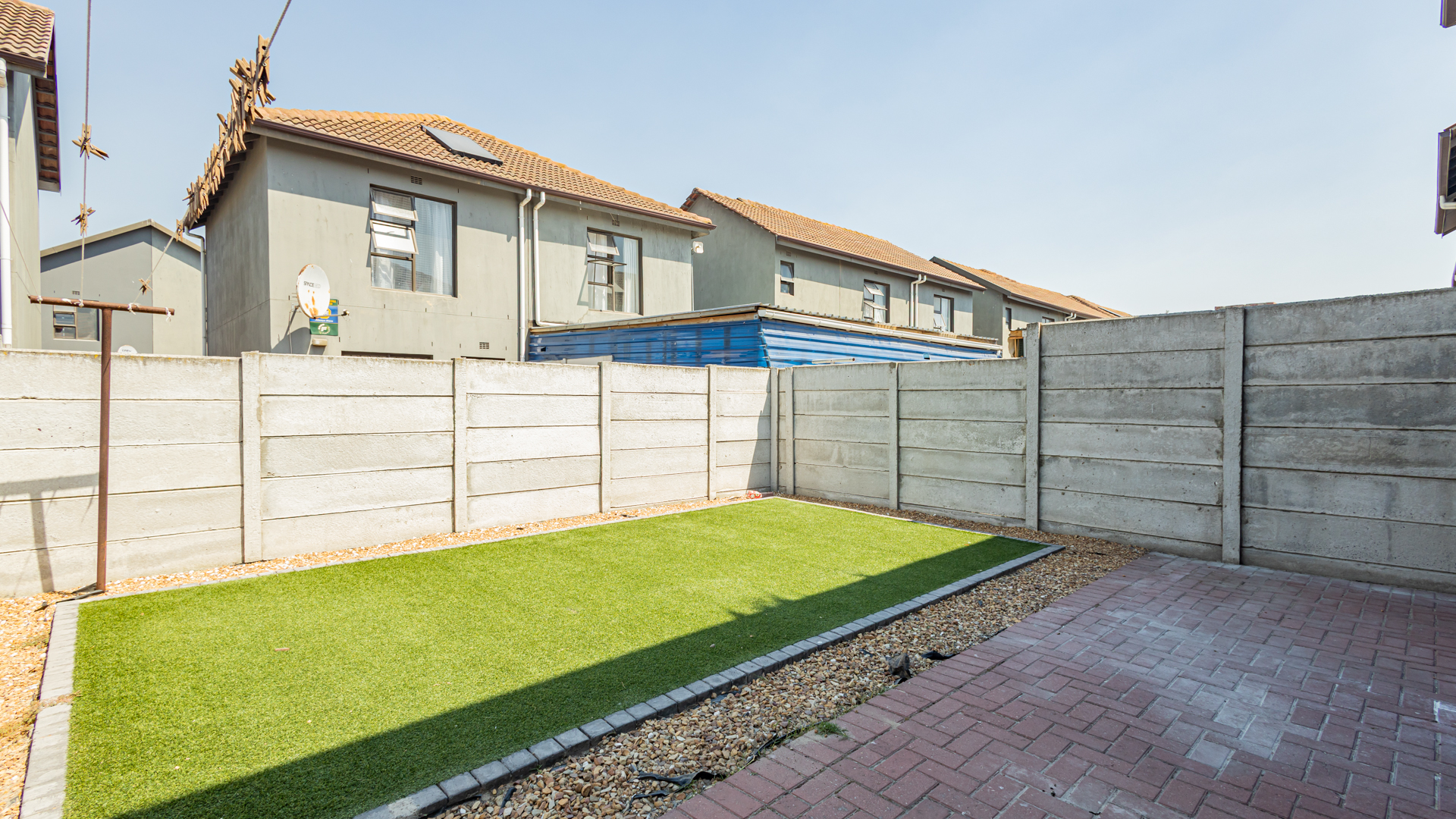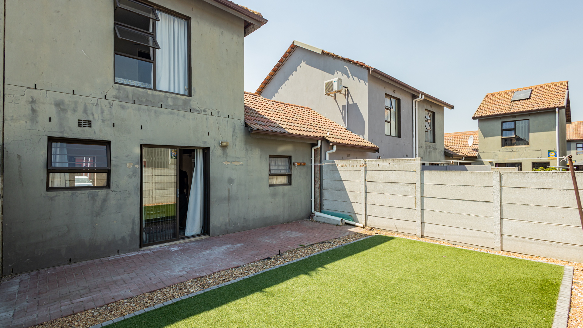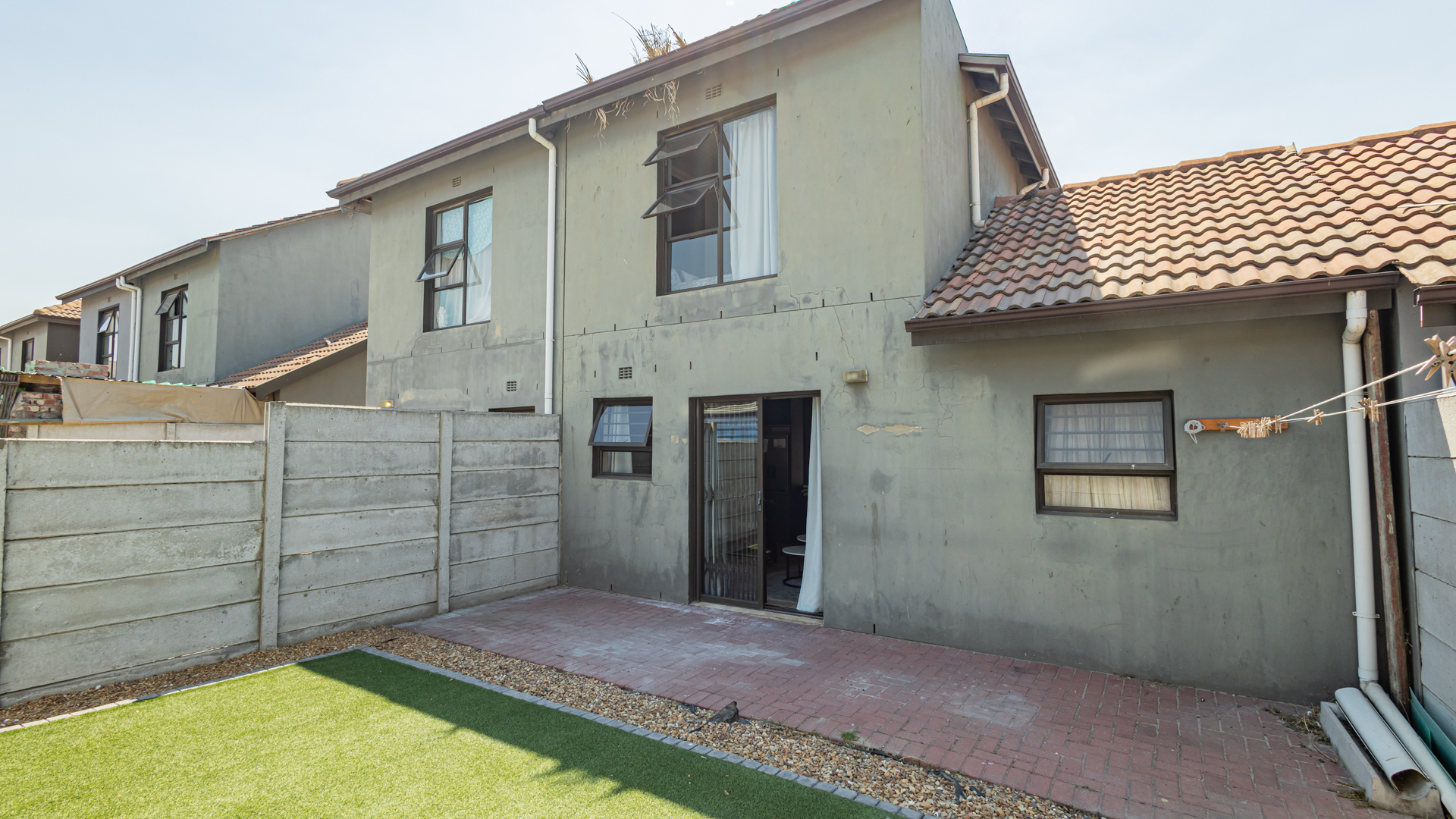 Outside Area: The backyard with its artificial grass is neatly designed, children can run around and play. There is enough space for your own braai area creating endless gatherings and also relaxation.