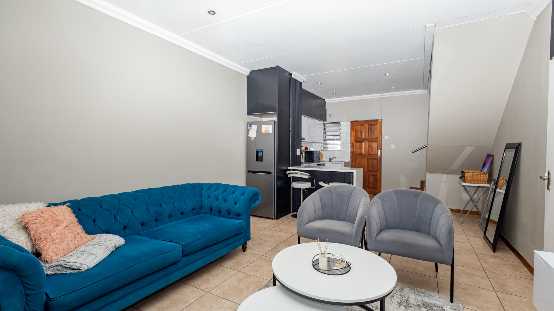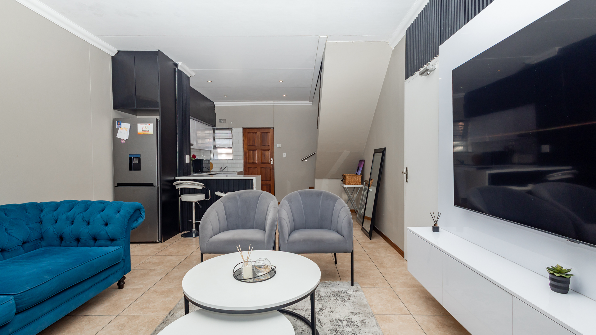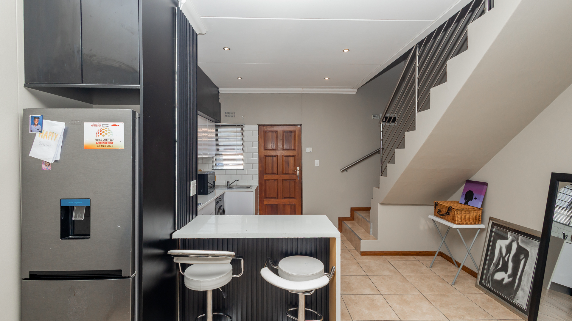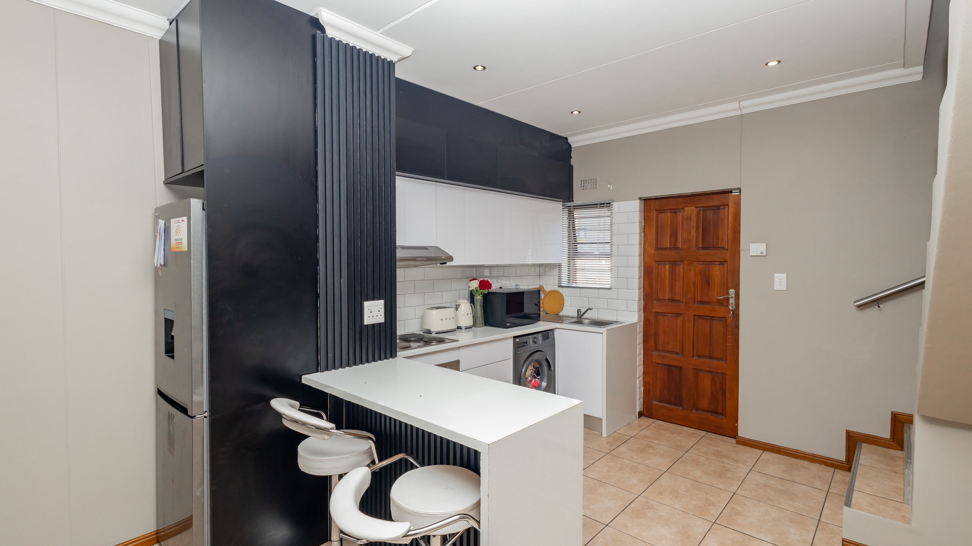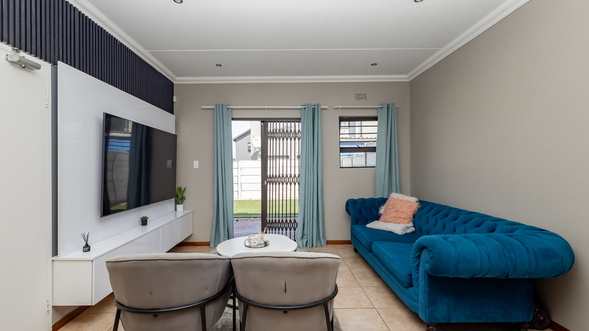 Outside Area: The backyard with its artificial grass is neatly designed, children can run around and play. There is enough space for your own braai area creating endless gatherings and also relaxation.