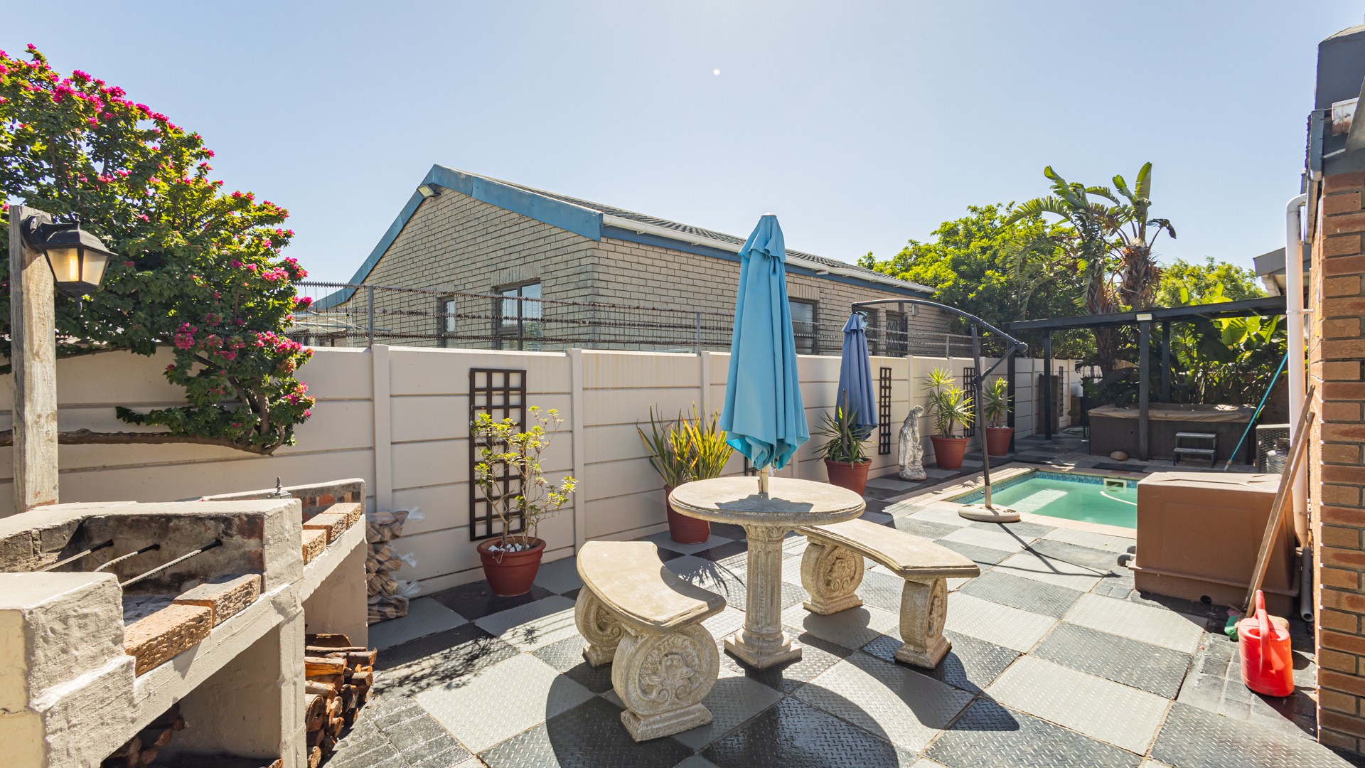 The outside leads to a sparkling pool and jacuzzi for entertainment or endless relaxation. If you feel like a braai and being outdoors there is an outside braai area.