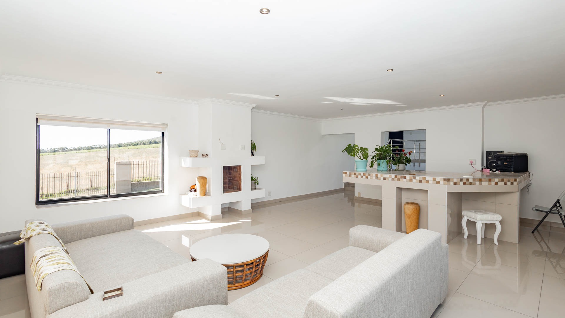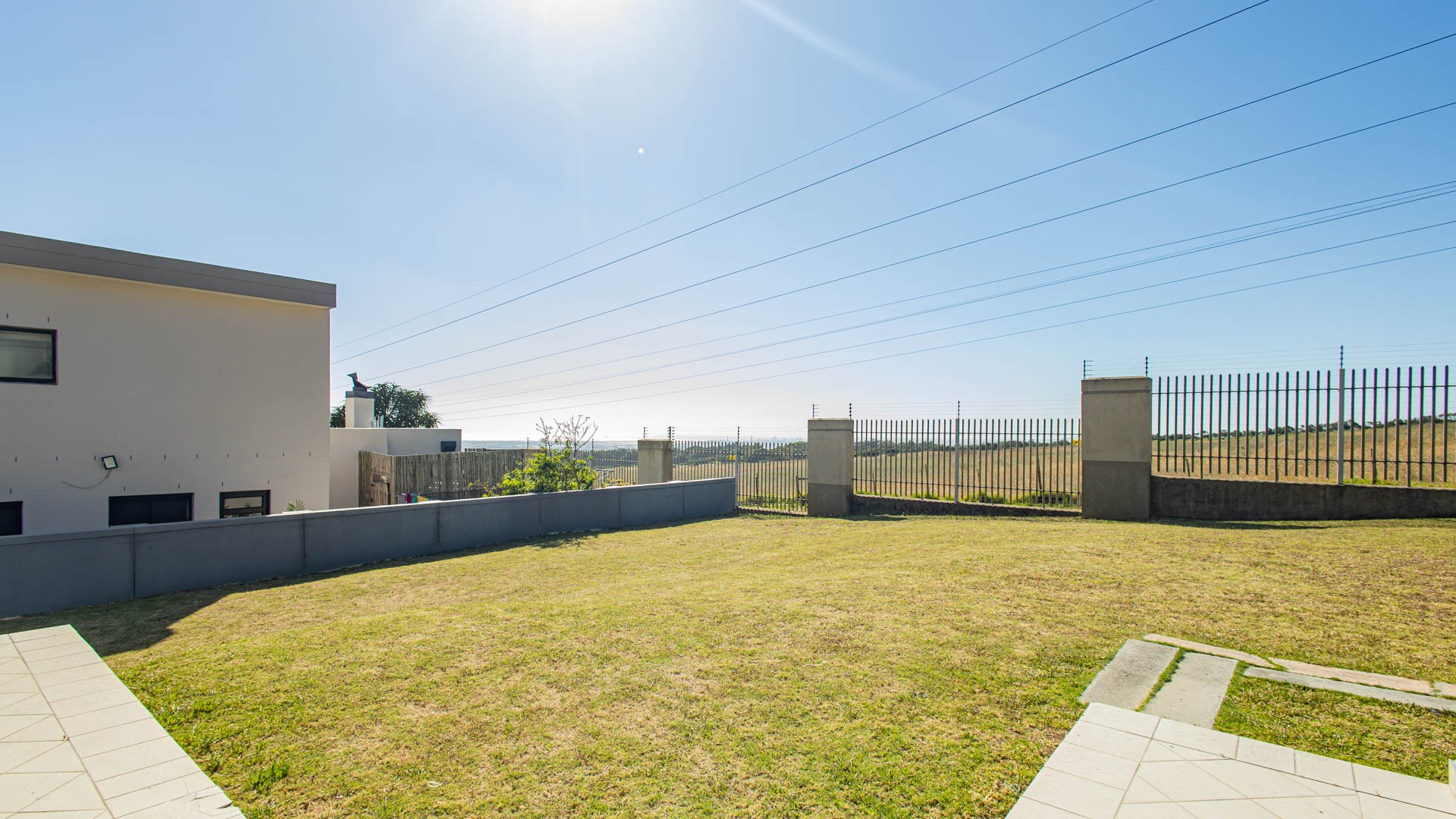 a large backyard and patio space with a built-in braai, ideal for enjoying