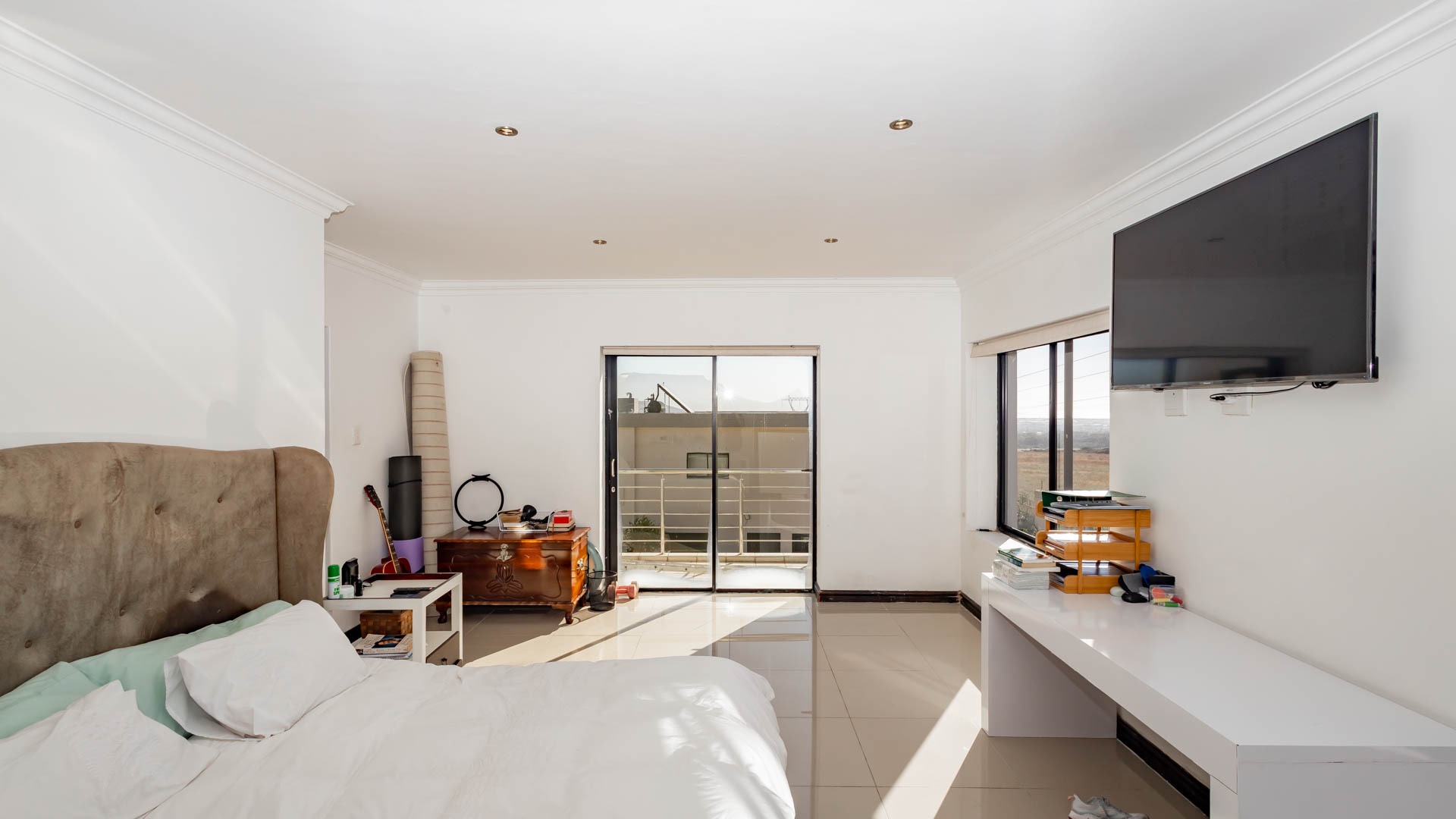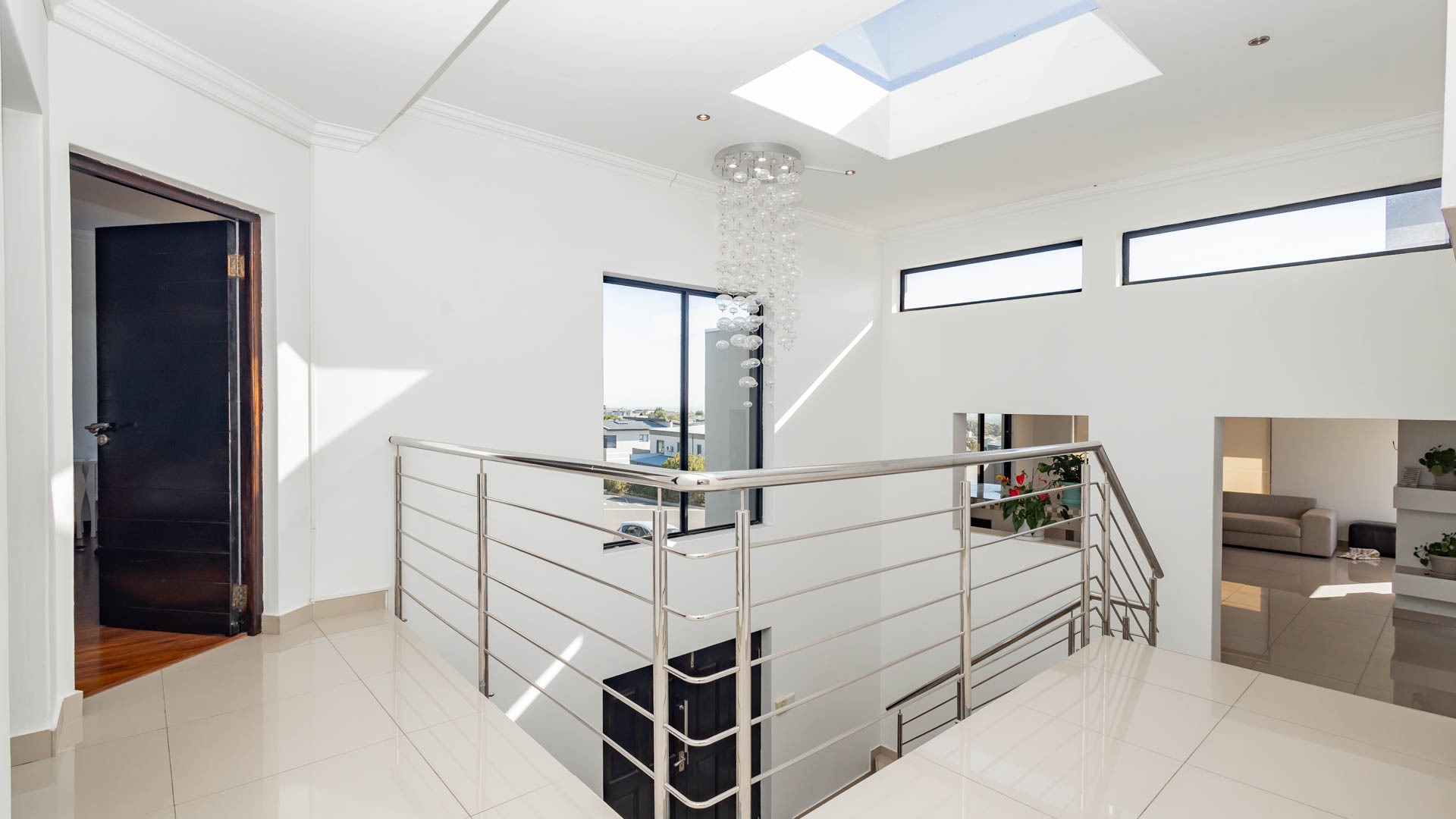 The upper level hosts three additional bedrooms, including a grand main suite