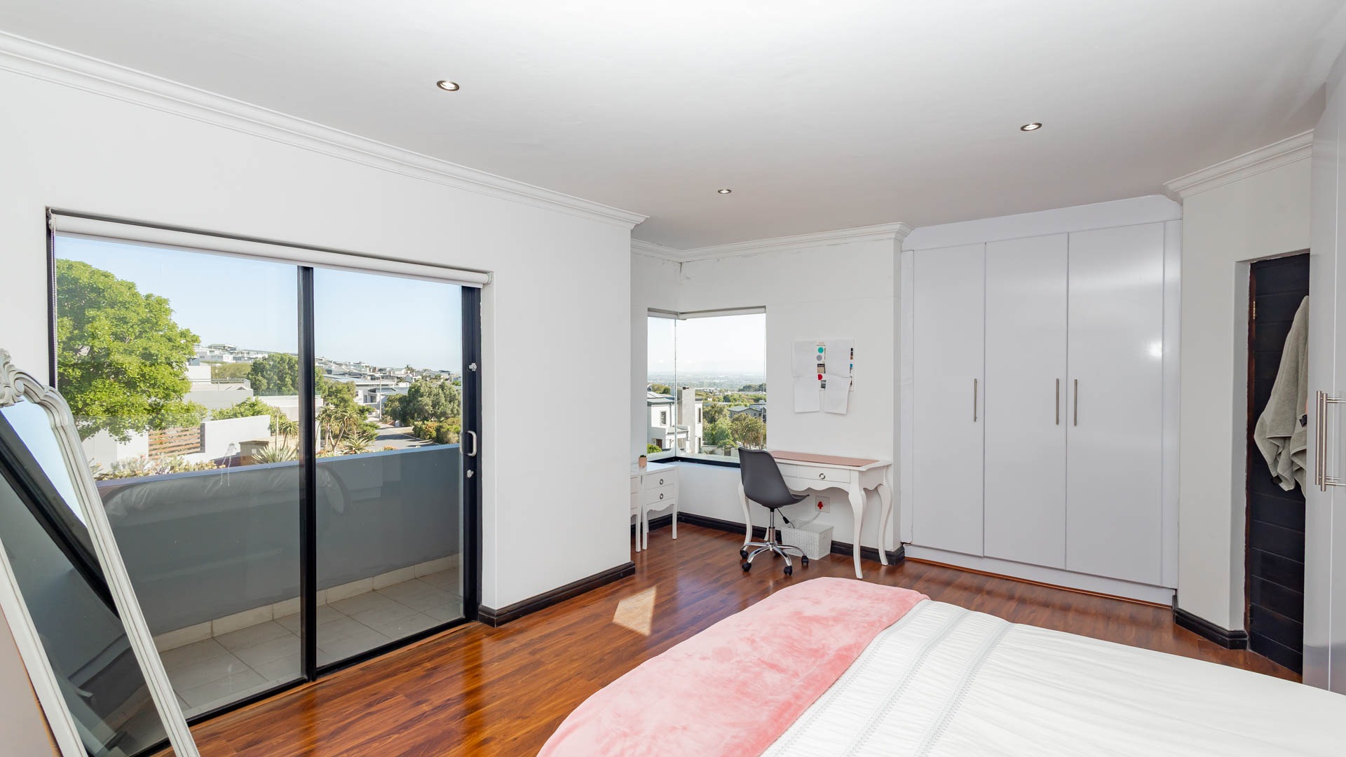 The upper level hosts three additional bedrooms, including a grand main suite
