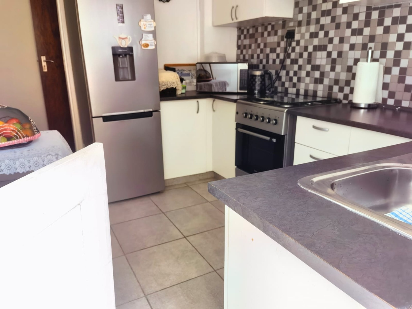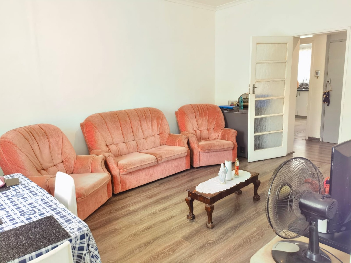 Nestled on a prominent corner lot in the vibrant Strand South, this two-bedroom apartment offers a blend of comfort and convenience. The multi-story building, featuring a light yellow exterior with distinct Art Deco-influenced architectural elements and red brick accents, presents a well-maintained kerb appeal. Its strategic position ensures good visibility and easy access within this sought-after Strand neighbourhood. Step inside to discover a thoughtfully designed interior spanning 86 square meters. The combined living and dining area boasts modern laminate wood-look flooring and neutral white walls, creating a bright and inviting atmosphere. Ample natural light streams in through large windows, enhancing the sense of space. The compact yet functional kitchen is equipped with modern white cabinetry, a checkered tiled backsplash, and neutral tiled flooring, providing a practical space for daily meal preparation. This apartment features two comfortable bedrooms, each fitted with modern laminate flooring and bright white walls, offering a clean canvas for personal touches. The main bedroom includes an upholstered headboard, adding a touch of comfort. The single bathroom is designed for functionality, comprising a separate shower area with a modern glass enclosure, a vanity with storage, and a separate toilet area with a window for natural light and ventilation. One of the property's standout features is the private outdoor balcony, offering panoramic mountain views over the residential neighbourhood – a perfect spot for relaxation. Practical amenities include one dedicated off-street parking space, securely located behind a gate. The property prioritises security with comprehensive measures such as a secure perimeter fence, electric fencing, robust gates, and window bars, ensuring peace of mind for residents. This apartment provides an excellent opportunity for those seeking a well-located home with essential features and a scenic outlook. Key Features: * Two Bedrooms * One Bathroom * 86 sqm Floor Size * Modern Laminate Flooring * Private Balcony with Mountain Views * Secure Off-Street Parking * Comprehensive Security Features * Modern Kitchen Cabinetry * Corner Lot Position * Art Deco Architectural Elements