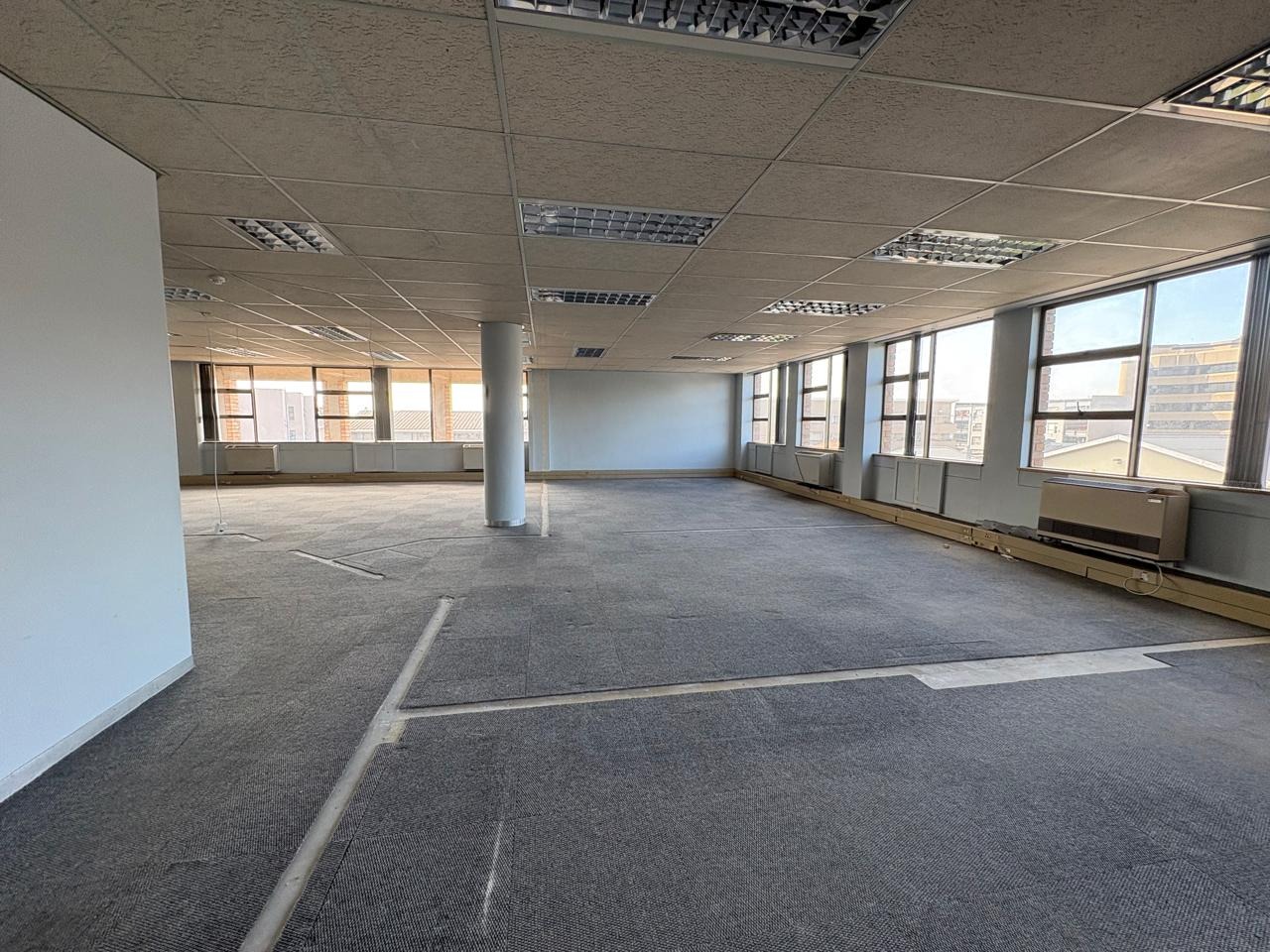 Discover a substantial commercial rental opportunity spanning 1043 square metres in the vibrant hub of Bellville Central, Bellville, South Africa. This expansive property offers a highly adaptable open-plan layout, presenting a blank canvas for businesses seeking to design a bespoke workspace tailored to their specific operational needs. The interior benefits from abundant natural light, streaming through numerous large windows that also offer city views from corner units, creating a bright and inviting atmosphere. The flexible floor plan allows for diverse configurations, whether you envision a collaborative open-plan office, segmented departments, or a combination of both. The existing infrastructure, including dropped ceilings with integrated lighting and carpeted flooring, provides a solid foundation for a modern fit-out. With five dedicated bathrooms and two kitchens, the space is well-equipped to support a significant workforce, enhancing convenience and functionality for your team. This property is ideally suited for a range of commercial ventures, from corporate headquarters and professional services to creative agencies or educational institutions. Its generous size and adaptable nature ensure it can accommodate evolving business requirements. While the space offers an opportunity for modernisation, its core features provide excellent potential for a contemporary and efficient working environment. Bellville Central is a well-established commercial node, offering strategic access and connectivity within the broader Cape Town metropolitan area. Its central location provides convenience for both employees and clients, making it a desirable address for businesses aiming for growth and visibility. Key Features: * Expansive 1043 sqm commercial space * Flexible open-plan layout * Abundant natural light from large windows * Five bathrooms and two kitchens * Opportunity for custom fit-out * Prime Bellville Central location