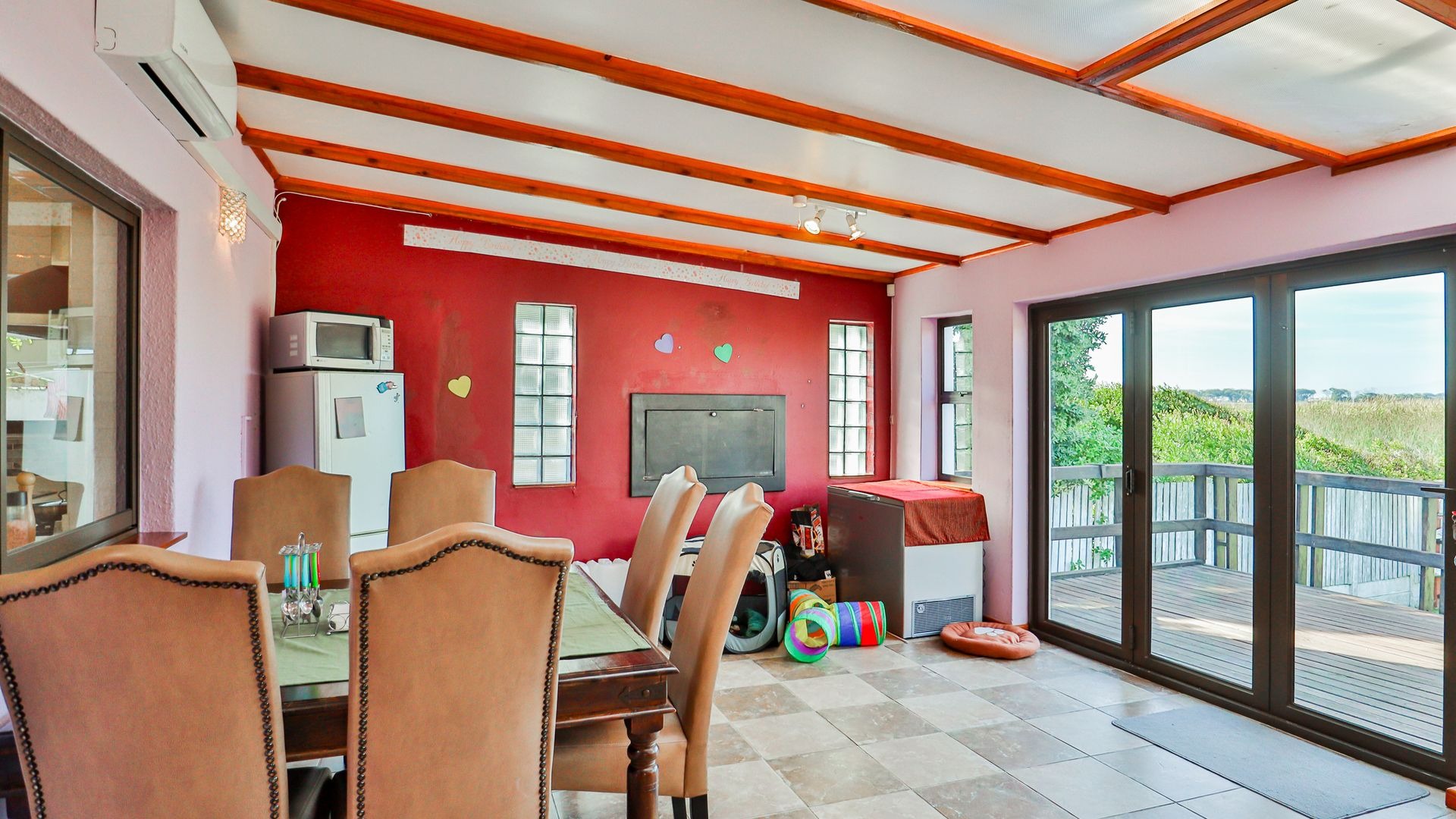 Outdoors has an expansive deck overlooking the vlei with a fire pit area.