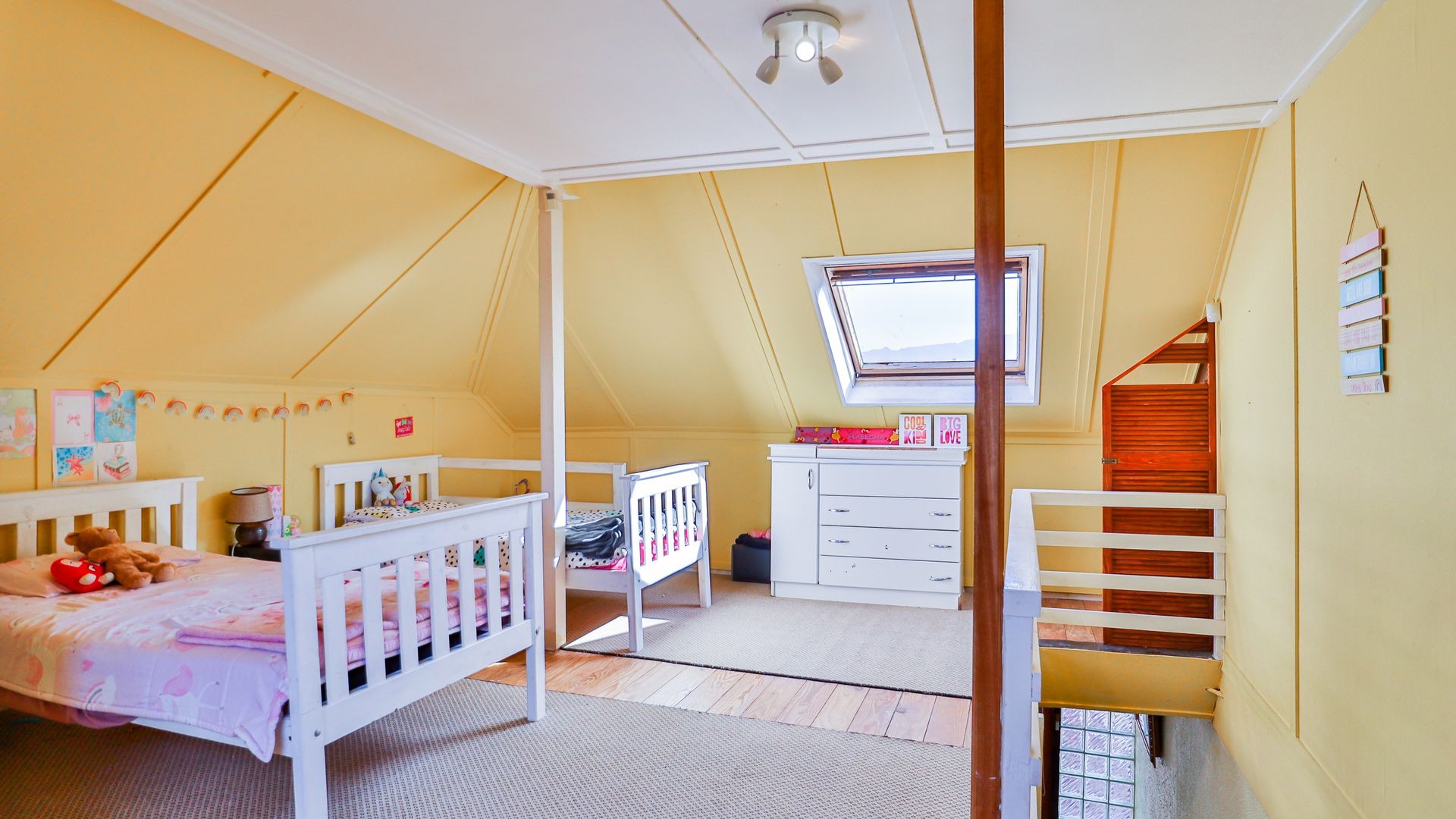 Three generous bedrooms, with a charming loft-style bedroom upstairs.