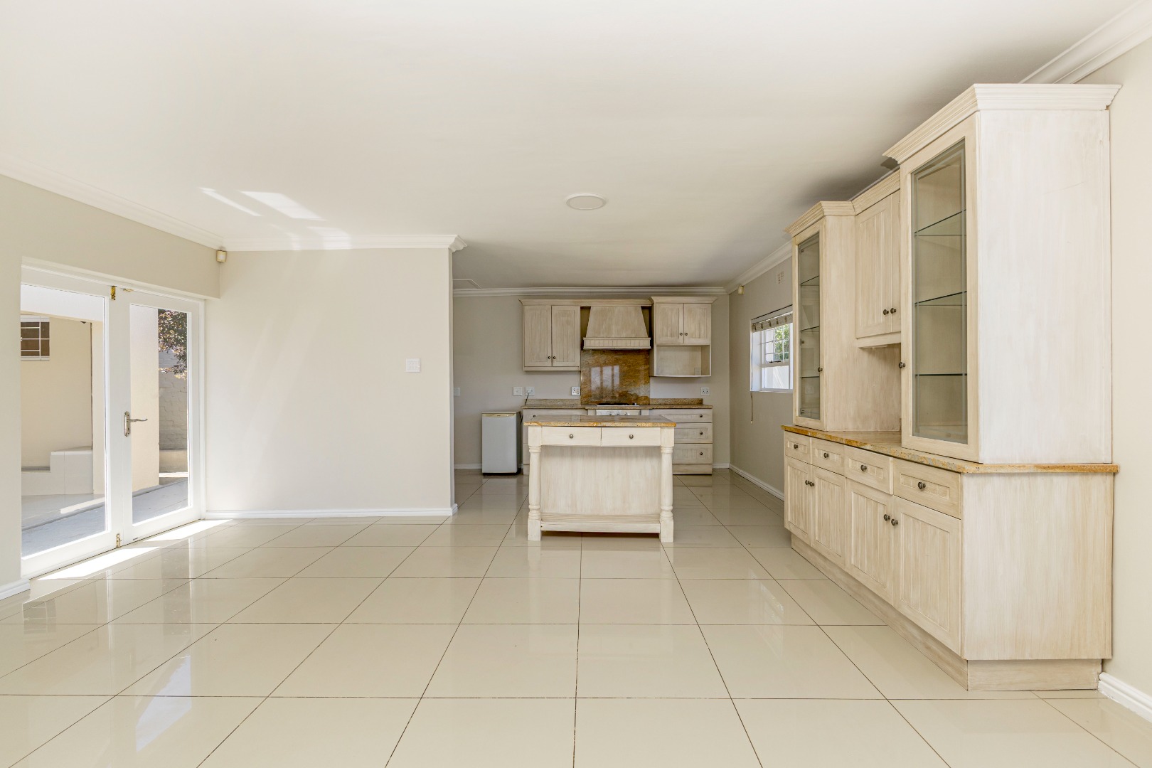 This inviting 3-bedroom, 2-bathroom home, including one en-suite, offers comfortable living in De Tijger, Parow. The residence features bright, open-plan living areas, comprising a lounge, dining room, and a dedicated family TV room, all adorned with glossy tiled flooring that enhances the natural light streaming through large windows and sliding doors. The functional kitchen is equipped with ample cabinetry and a built-in oven, ready for your culinary needs.