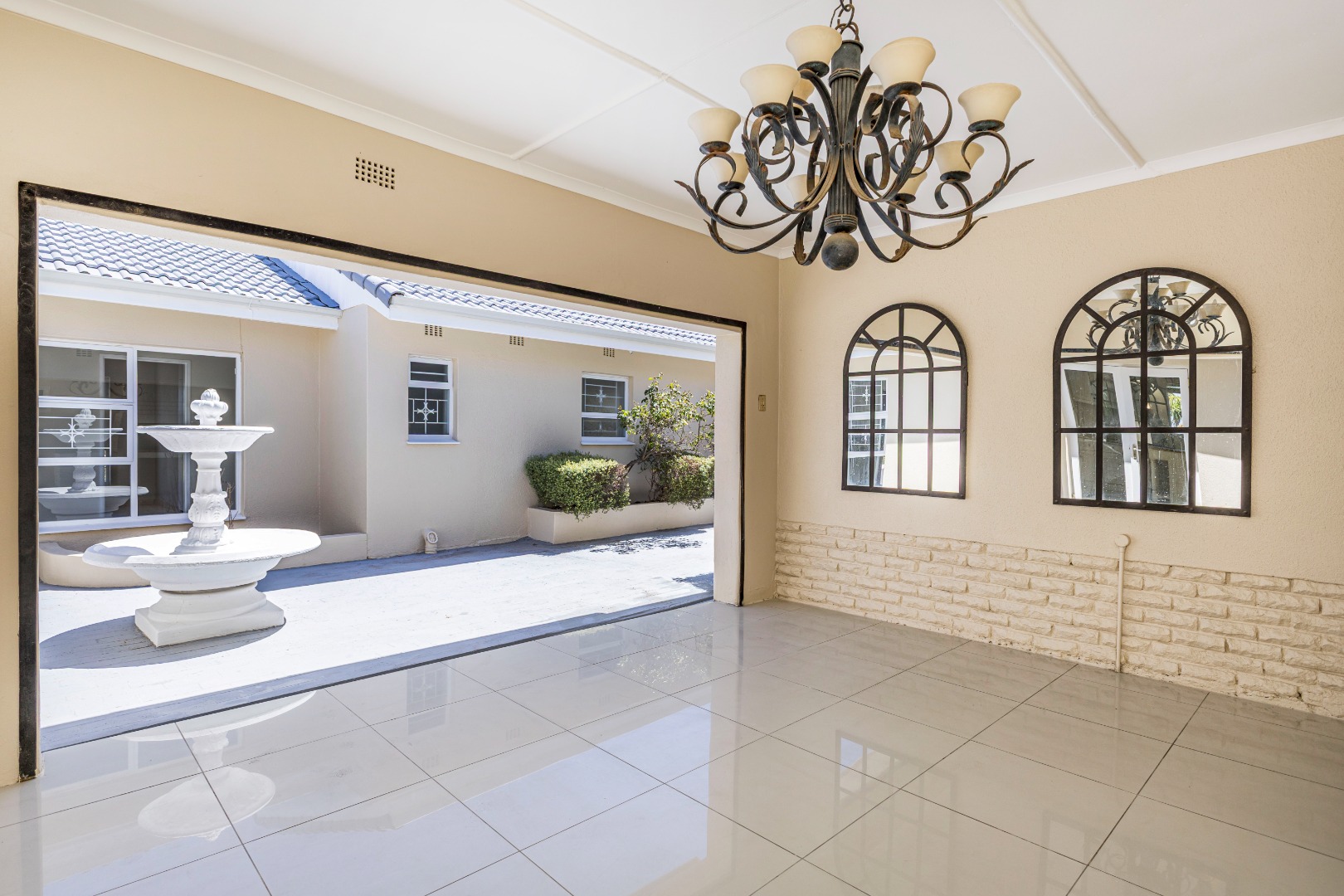 Designed for effortless entertaining, the property boasts a spacious covered patio and a dedicated braai room, complete with a built-in braai. This area seamlessly connects to a low-maintenance paved courtyard featuring a charming decorative fountain, perfect for outdoor gatherings. Enjoy the fresh air from the balcony or relax in the established garden, offering a blend of functionality and charm.