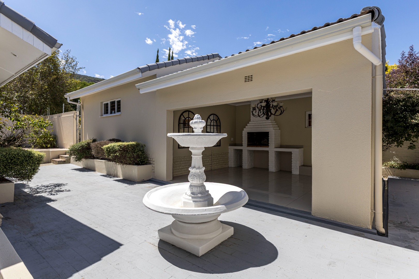 Designed for effortless entertaining, the property boasts a spacious covered patio and a dedicated braai room, complete with a built-in braai. This area seamlessly connects to a low-maintenance paved courtyard featuring a charming decorative fountain, perfect for outdoor gatherings. Enjoy the fresh air from the balcony or relax in the established garden, offering a blend of functionality and charm.